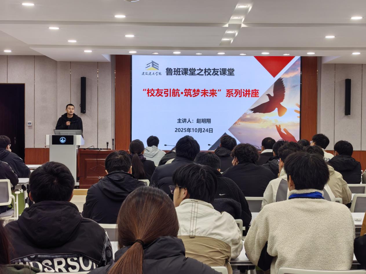 10月24日晚,学院在利亚楼报告厅举办鲁班课堂“校友引航·筑梦未来”系列讲座第三场,邀请了2022届优秀校友、全国大学生年度人物、全国向上向善好青年、江苏省最美大学生、中国核工业华兴建设有限公司基础事业部团委委员赵明翔担任主讲嘉宾,学院学生党员、入党积极分子、青马培训班成员和主要团学干部参加讲座。